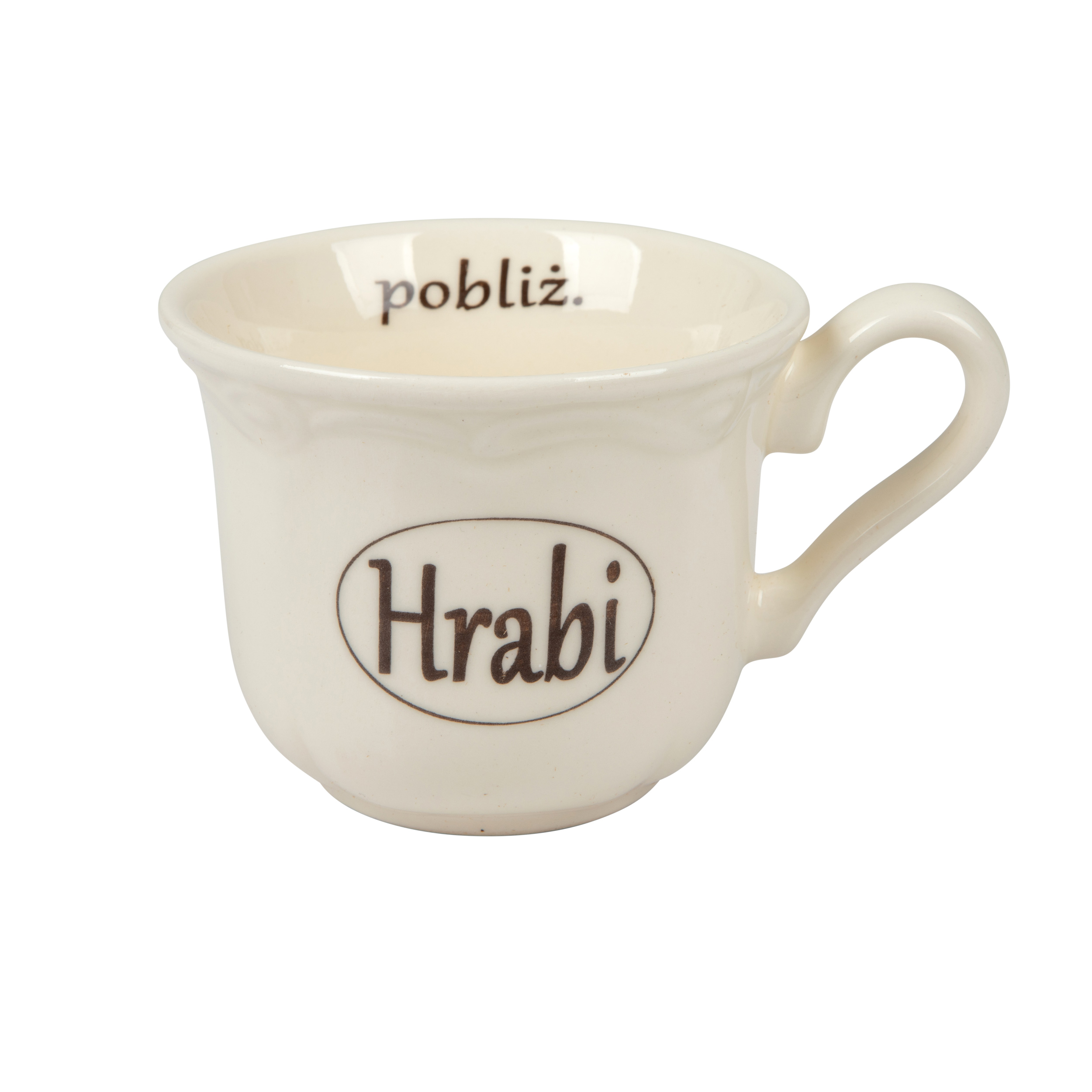 Wykonana z ceramiki przez Manufakturę Chodzieską, rozbawia napisem “Hrabi” na zewnątrz i żartobliwym “Pobliż” wewnątrz – idealna niespodzianka po ostatnim łyku kawy.